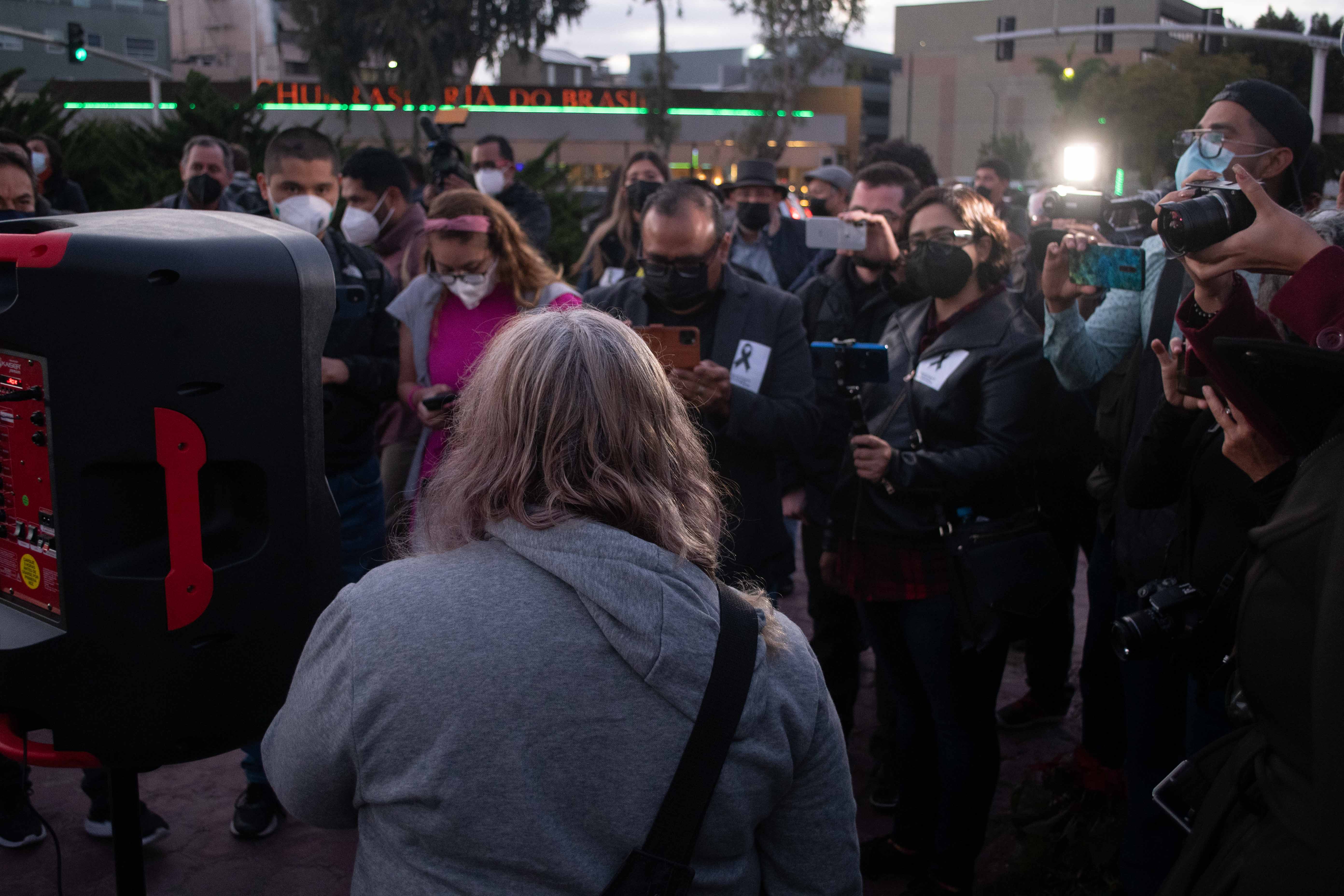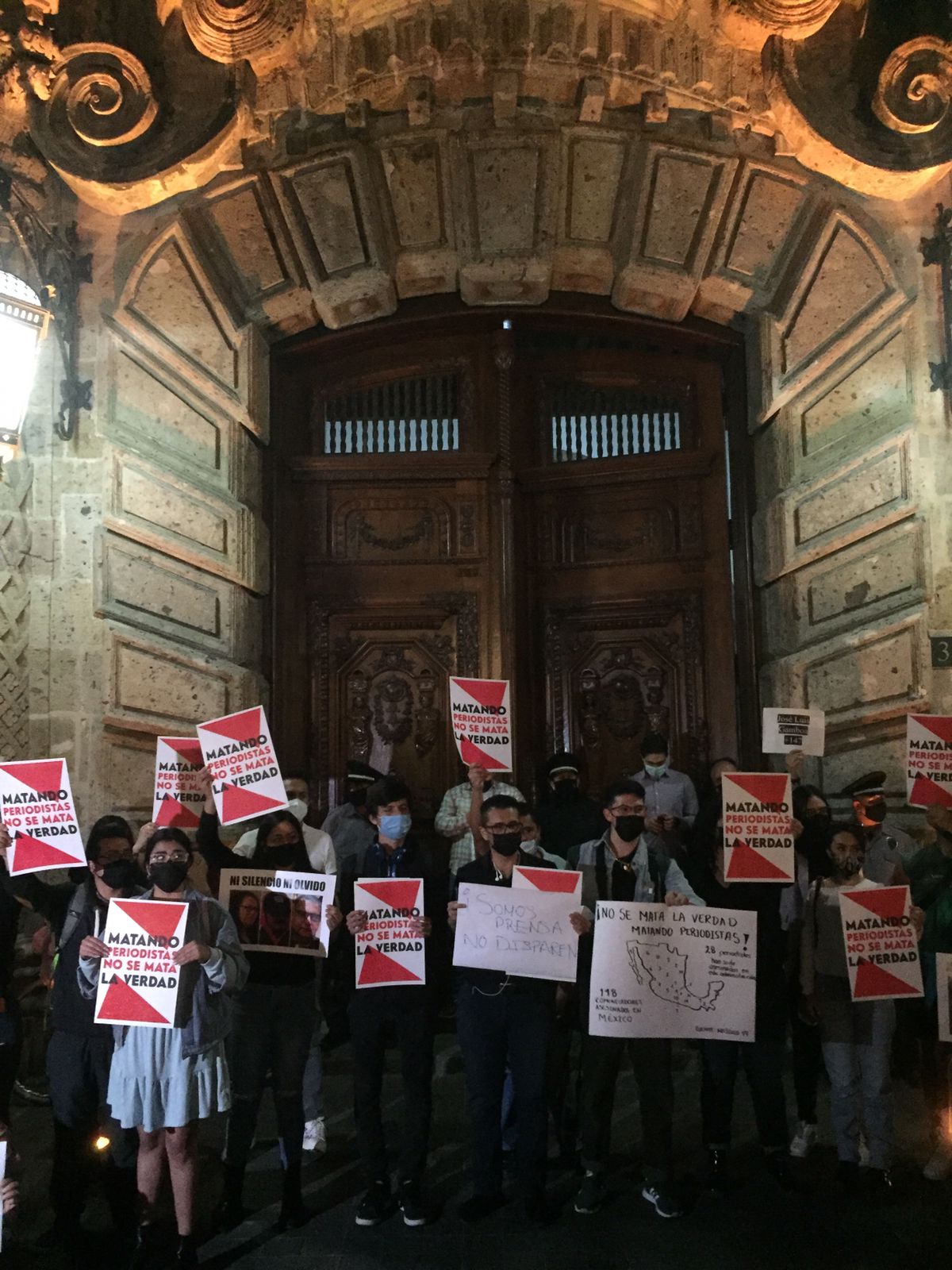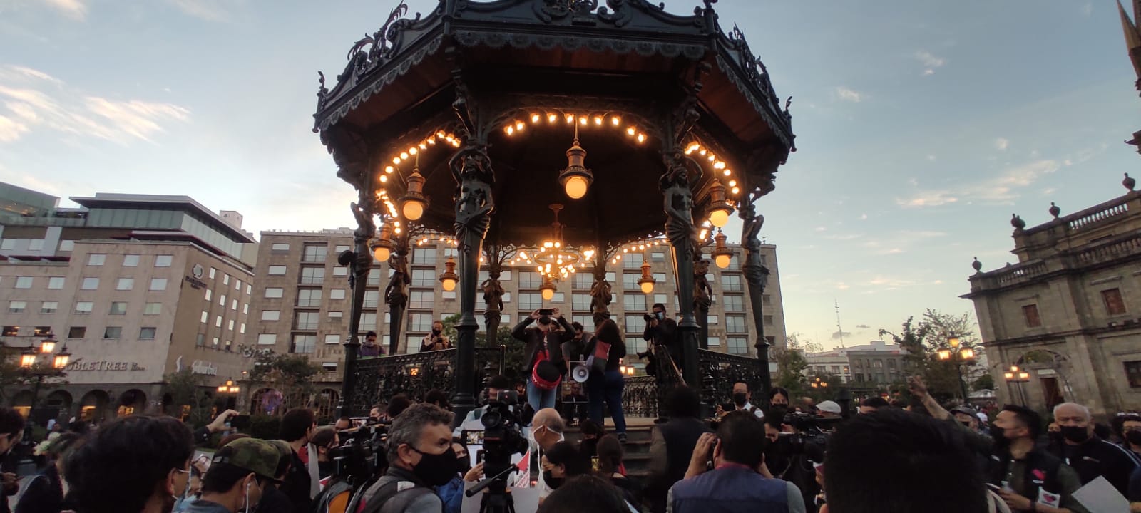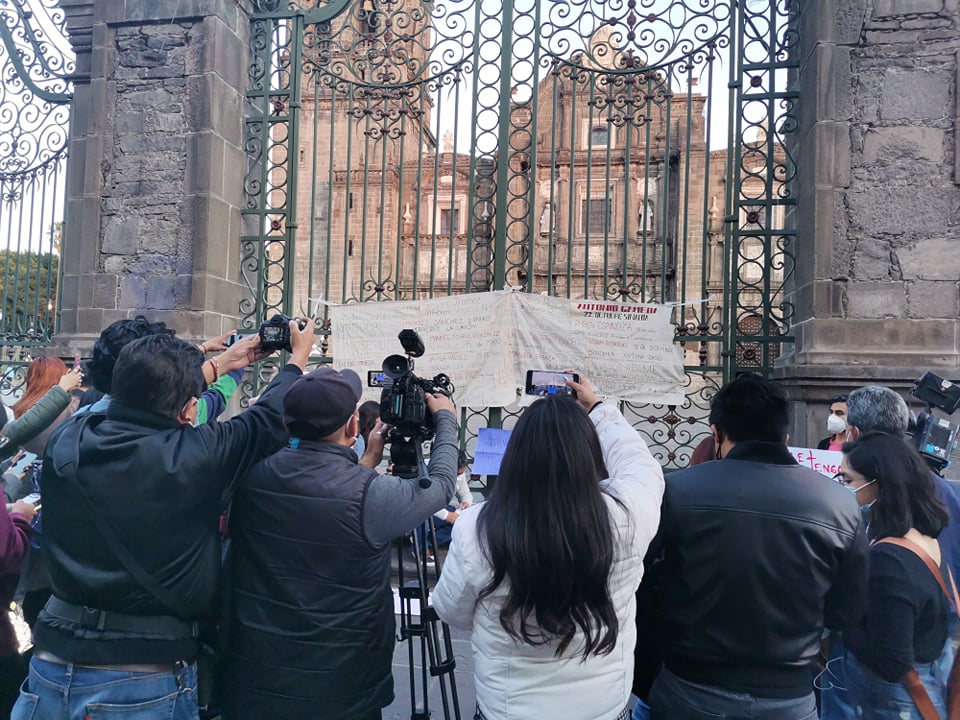 Se instaló una bocina para iniciar con proclamaciones de distintos medios, entre distintas voces se comentó lo siguiente: ”Los del gremio periodístico se están levantando hoy. Estamos dejando nuestras redacciones, estamos dejando de cubrir otros hechos y nos estamos uniendo para exigir justicia para nuestros compañeros Margarito Martínez, Lourdes Maldonado y José Luis Gamboa en Veracruz”.