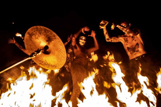 La Bande-Son Imaginaire, banda poética, teatral y con gran inspiración en el expresionismo alemán se entregó al performances desde que pisaron el escenario de la calle sexta brincando y bailando durante los 90 minutos que aproximadamente duró la presentación,